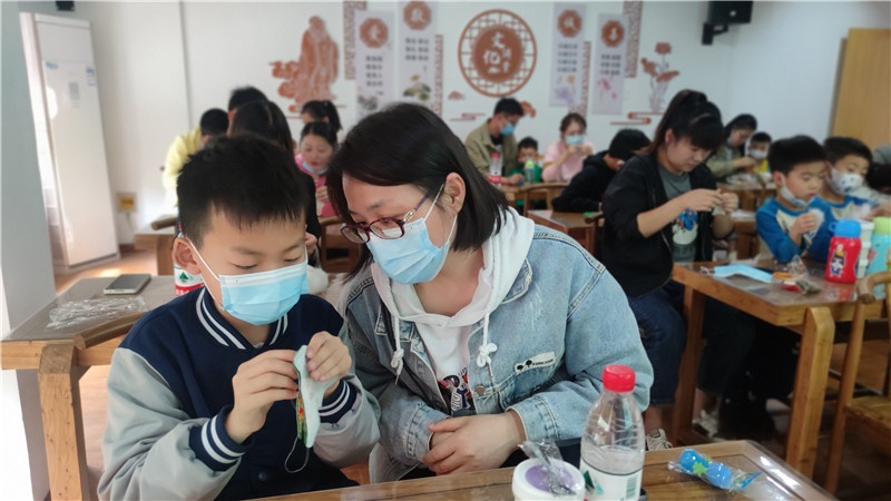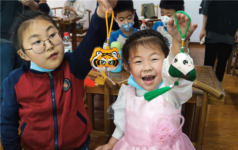 悠悠香囊味,濃濃端午情。誰說針線是女生的專利,男孩子照樣幫媽媽穿針引線,不一會兒,花色不同、圖案精美的香囊雛形就完成了,親子們把中藥包放入縫制好的香囊中,串上玲瓏剔透的珠子,掛上色彩繽紛的流蘇,一個個飽滿芳香的中藥香囊就制作完成了。端午節習俗,傳遞的是文化,傳遞的是感情。一個簡單的香囊不僅增加傳統節日的氛圍,更有利于親子增進情感,同時培養了孩子們的動手能力和創造力,還進一步了解了中華傳統文化。在小朋友心中埋下了愛國主義的種子,厚植愛國主義情懷,引導他們成長為新時代“四有青年”。